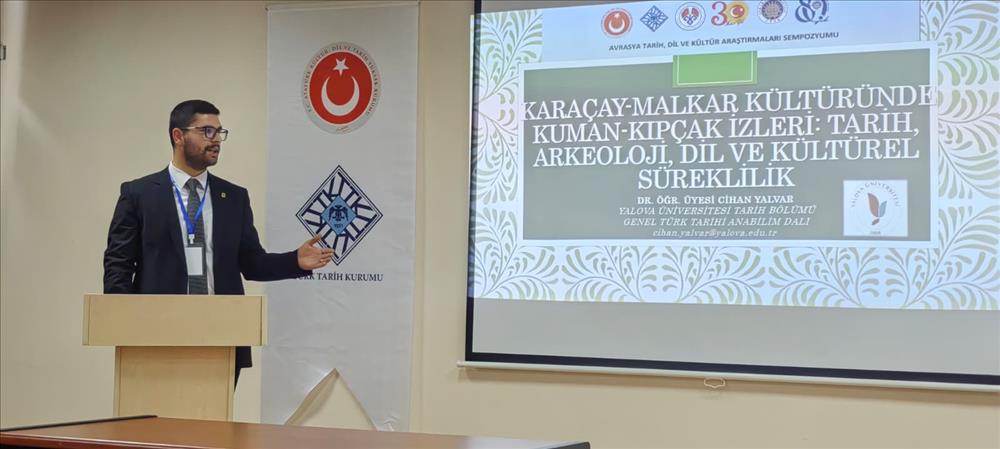 Sempozyum kapsamında bölüm başkan yardımcımız Dr. Öğr. Üyesi Cihan Yalvar "Karaçay-Malkar Kültüründe Kuman-Kıpçak İzleri: Dil, Gelenek ve Tarihsel Süreklilik" adlı bir bildiri sundu. Bölüm Başkan Yardımcımız konuşmasında Karaçay-Malkar kültüründe Kuman-Kıpçak izlerini dil, gelenek ve tarihsel süreklilik bağlamında değerlendirdi.